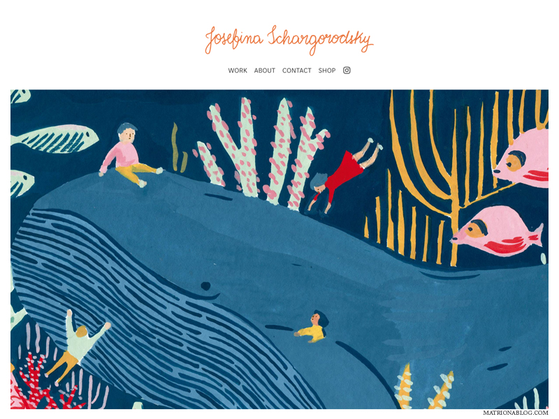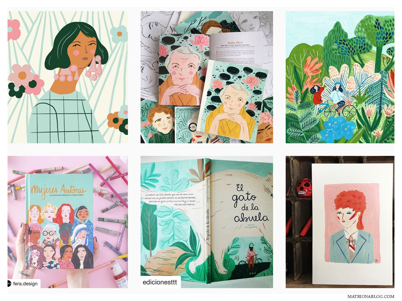 Fuimos a su “sitio oficial”, es decir, lo que ella dice de ella misma tal vez: “ilustradora y diseñadora-….vive en Buenos Aires. Trabaja principalmente con gouache –acuarelas-… influenciada por la nostalgia del pasado, el diseño textil y la belleza de lo cotidiano…. intenta comunicar y transmitir su sensibilidad. Su material incluye ilustraciones para proyectos editoriales, productos y diseño textil… Y cuando no está dibujando disfruta de ver documentales y pasear por librerías”.