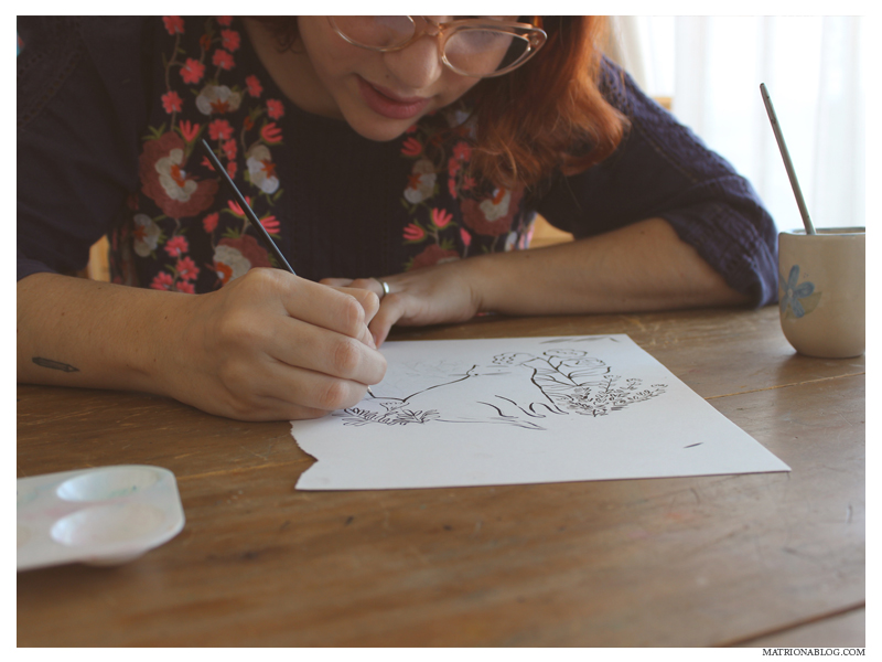 La propuesta de Matriona fue simple y en el mismo sentido: que se inspirara de nuestras colecciones para diseñarnos una estampa exclusiva. Para con ella nosotros poder componer una mini colección a partir de su obra. Este fue el resultado: