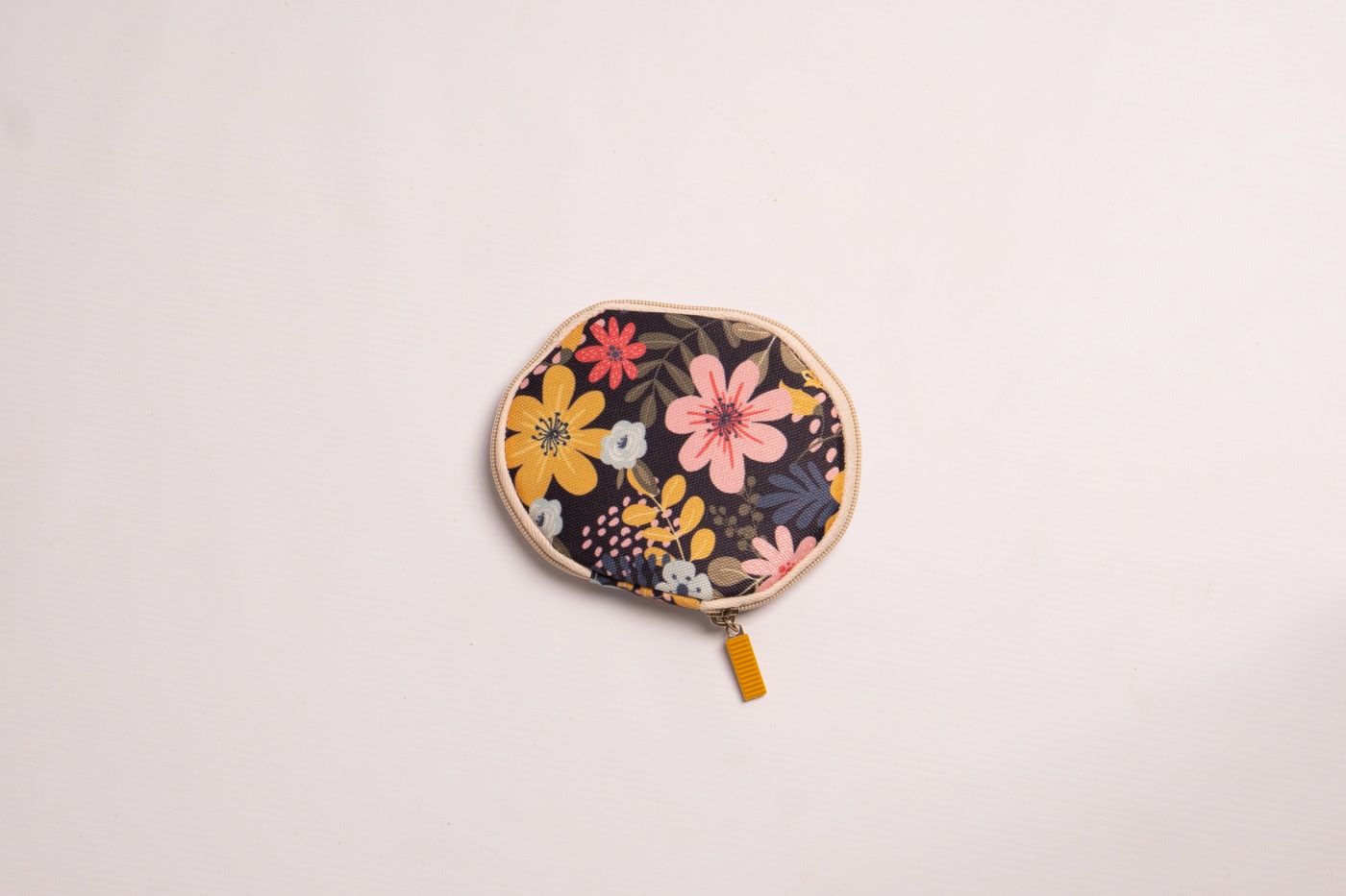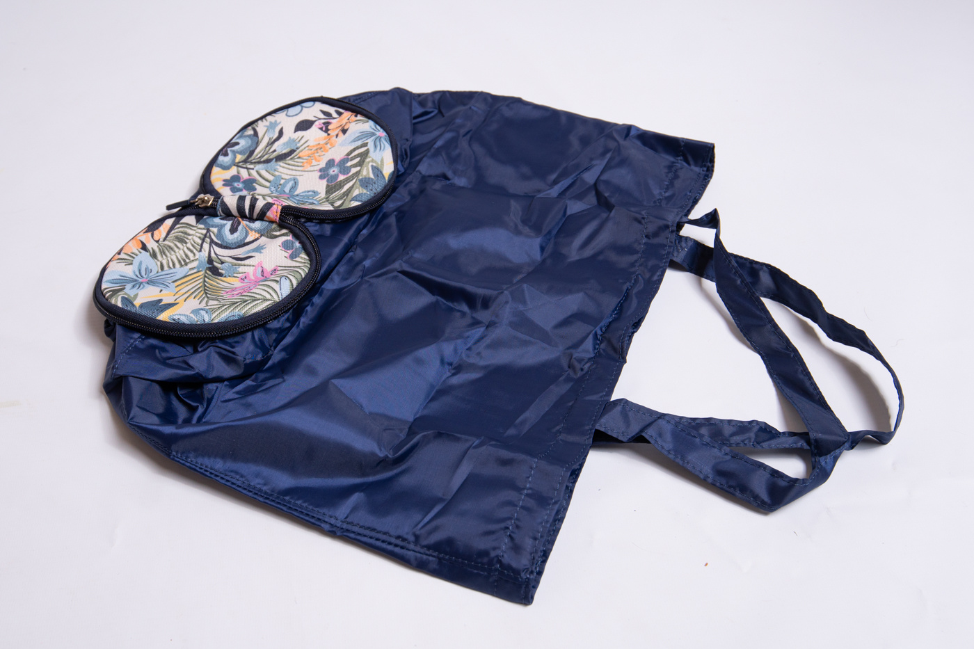 Simpáticos monederos estampados en tela sintética se transforman en bolsas de compras.