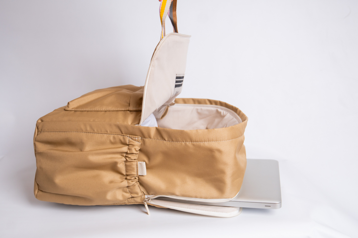 De gran tamaño, con respaldo protector y bolsillo especial para la compu (hasta 16″)
