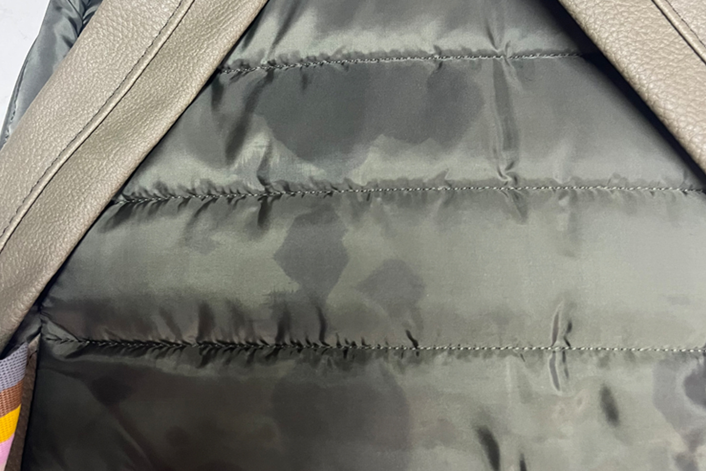 Solo disponible en color verde oliva. Cada mochi posee una mancha del estilo a la que mostramos en la foto. Ninguna mochila tiene la mancha tal cual la foto. Las manchas son similares en tamaño y lugar.